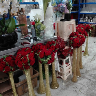 Je me souviens notamment de compositions avec des branches d'orchidées réalisées pour les salles du Centre national des Armées, des décors de buffet pour les pavillons du Bois de Boulogne, de longs et hauts vases transparents remplis de paillettes dorées, surmontés de boules de roses rouge (on avait tous participé au piquage des roses dans les boules de mousse), pour le musée des arts forains, ou encore de ces paniers fleuris, si bien agencés, créés pour un déjeuner champêtre (style "Déjeuner sur l'herbe"), événement organisé par le musée d'Orsay pour l'exposition "Spectaculaire Second Empire" à l'automne 2016. Et pour Noël, nous avions monté de nuit, sur site, les décors d'un grand hôtel des Champs-Elysées.